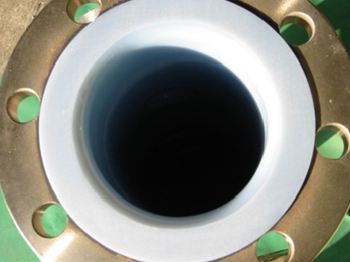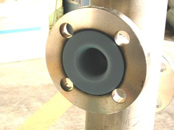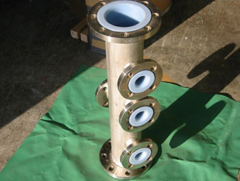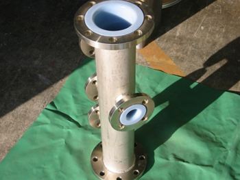 "S-ETFE"回転成型ライニング品です。写真ヘッダー管は、素材をSUS304にて新作+ライニングを施工した